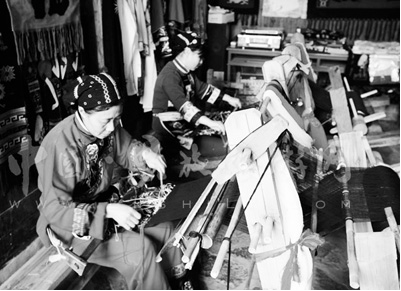 在這些土家女人手上,一架織錦機(jī),就是一個(gè)大千世界,它能真實(shí)或者夸張地織出存在于山上田野的所有物像。雖然她們的文化水平不是很高,卻能創(chuàng)造出一些很抽象的西蘭卡普圖案。有時(shí),我更愿意這樣說:西蘭卡普是一種與人俱存的藝術(shù)。