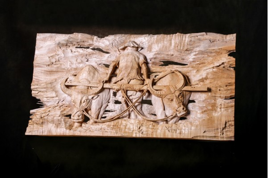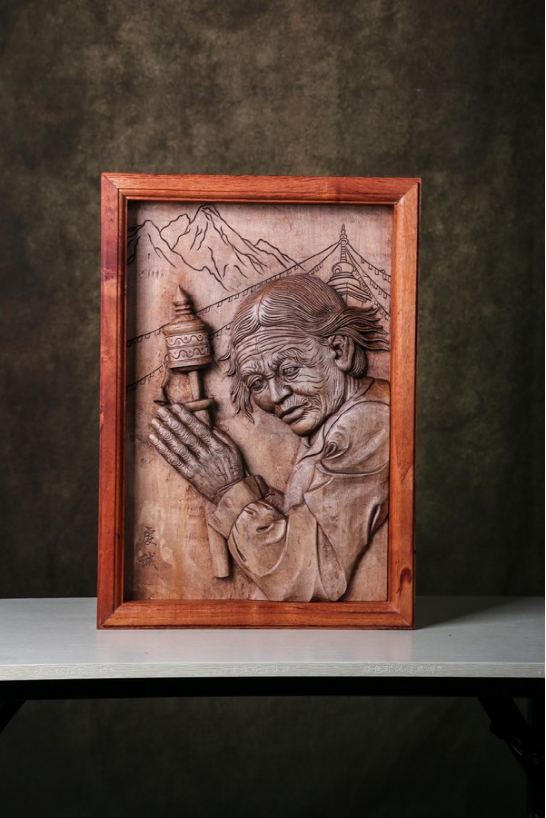 《門神》、《福滿門》這是劍川木雕在繼承傳統(tǒng)基礎(chǔ)上,對傳統(tǒng)的一種大膽嘗試性的發(fā)揚(yáng)創(chuàng)作。這些作品的特點(diǎn)是,既保留了嫻熟的傳統(tǒng)木雕技藝,只是通過巧妙的組合,在現(xiàn)成的古老大門上雕出“門神”或用舊門框作為木雕作品的邊框,從而產(chǎn)生一種新的意趣,這種創(chuàng)意很適合當(dāng)下都市的審美要求,也是劍川木雕未來發(fā)展中很值得提倡的新思路。木雕復(fù)制《張勝溫畫卷》
