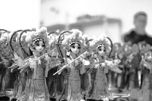 據(jù)貴州盛華職業(yè)學(xué)院唐人坊非物質(zhì)文化遺產(chǎn)傳承學(xué)院副院長(zhǎng)秦貞錚介紹,“唐娃娃”全都是手工制作,十分復(fù)雜,完成一個(gè)娃娃可能要經(jīng)過上百道工序?!啊仆尥蕖母叨入m然只有30厘米,但這些人物穿的衣服幾乎是京劇劇裝的原樣縮小版。它們的妝容都是手畫的,頭發(fā)也是手工盤上去的,帽子采用傳統(tǒng)掐絲工藝?!?/p>