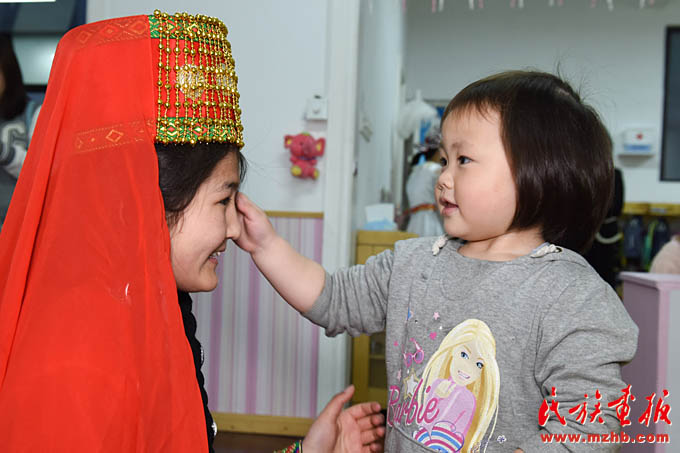 自2014年首場“民族風(fēng)吹進幼兒園,愛心曲唱暖身邊人”公益活動獲得積極反響后,幼兒園黨支部、工會、團支部牽手園區(qū)民族團結(jié)共建單位,走出校園、貼近社區(qū),以愛心義賣、義拍、定向捐助等方式為園區(qū)少數(shù)民族困難家庭送去關(guān)懷。在近幾年的園區(qū)民族工作實踐中,天恒名都幼兒園的“家、校、社、企”聯(lián)動模式不斷發(fā)展創(chuàng)新,培育孵化出少數(shù)民族(幼教)實習(xí)點、少數(shù)民族志愿者服務(wù)隊等形式的實習(xí)模式。2013年至今,幼兒園已為上海市群益職業(yè)技術(shù)學(xué)校的“新疆班”學(xué)生210人次提供了實習(xí)崗位。
