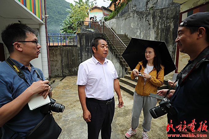 校長楊四洋(左二)接受記者采訪。