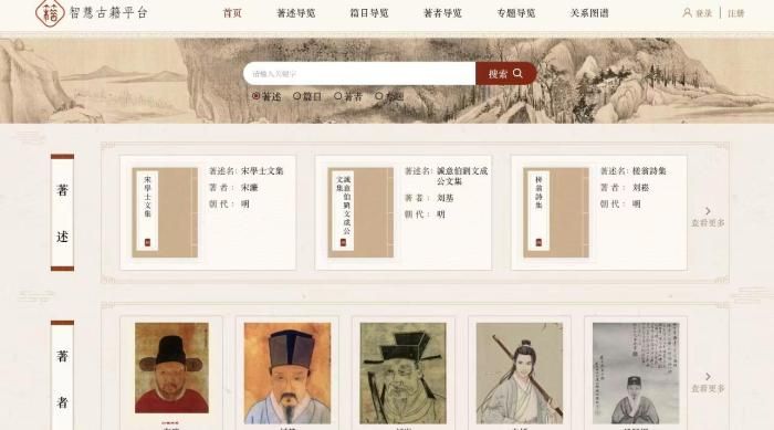 記者看到,只要點擊“智慧古籍平臺”首頁的“著述導(dǎo)覽”頁面,便可查閱著述的章節(jié)目錄、著述提要等基本信息及相關(guān)作者的世系圖、社會關(guān)系圖;點擊“篇目導(dǎo)覽”即可進(jìn)入文本閱讀界面。