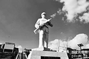 那是在左鳩戛彝族苗族鄉(xiāng)的人民英雄廣場(chǎng),鮮紅的國(guó)旗映襯下,英雄劉興文的塑像高高矗立,他手握沖鋒槍?zhuān)抗饩季加猩竦赝h(yuǎn)方。當(dāng)?shù)氐墓ぷ魅藛T向我們介紹著劉興文的生平事跡, 驕傲、自豪之情溢于言表。