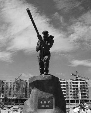1952年10月14日,上甘嶺戰(zhàn)役打響,龍世昌主動(dòng)要求參加爆破組。戰(zhàn)斗中,他英勇頑強(qiáng),在身體多處受傷的情況下,采取投擲手榴彈、利用敵人尸體等手段聲東擊西,炸毀多座敵人地堡。在摧毀最后一座地堡時(shí),他將拉燃的爆破筒塞進(jìn)敵人地堡,但剛一松手,敵人將爆破筒推了出來(lái),他揀起冒煙的爆破筒又塞了進(jìn)去,敵人又拼命地向外推,最后,他奮不顧身地用胸膛緊緊頂住爆破筒。隨著轟隆一聲巨響,地堡炸毀了,龍世昌也永遠(yuǎn)留在了上甘嶺,留在了異國(guó)的土地上。