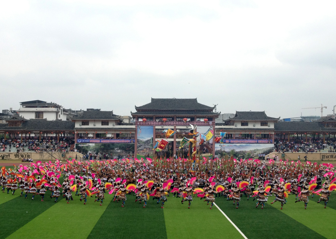 “錦雞舞”也是在銅鼓和蘆聲伴奏下,由中年以上的苗族婦女在銅鼓坪上表演的傳統(tǒng)祭祀性舞蹈,這個舞蹈充分體現(xiàn)了苗族人民自古對飛鳥圖騰的崇拜和向往。她們頭戴銀飾,身穿黑色短上衣,腰間束若干條五彩鑲邊,末端墜掛銀牌和流蘇似錦雞華麗羽毛的彩條長裙,臀部被高高墊起效仿錦雞高翹的尾羽。她們圍圓圈起舞,舞蹈動作緩慢,在或向前或向后的舞步中,模仿錦雞頻頻“踱步”“旋轉(zhuǎn)”和“飛翔”,隨動作變化而使腰間彩帶起落飄散的舞姿,把人們的心又帶回到遠(yuǎn)古時(shí)代。象征鳳凰的“錦雞舞”,充分表現(xiàn)了苗族婦女為祈求民族富足和五彩人生虔誠而肅穆的場面。