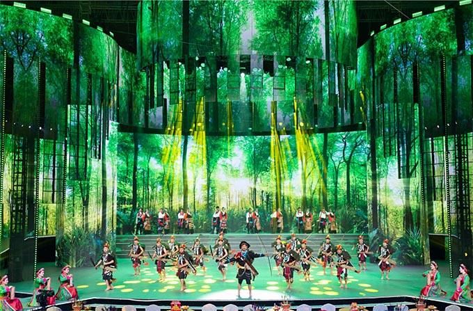 在舞美上,晚會(huì)傾力打造中華文化概念,突出鑄牢中華民族共同體意識(shí),建構(gòu)熱烈祥和的觀演環(huán)境、身臨其境的現(xiàn)場體驗(yàn)、自然流暢的互動(dòng)場景,以更炫麗、更時(shí)尚、更具生命力的節(jié)目內(nèi)容和形式,為觀眾提供技術(shù)與藝術(shù)完美結(jié)合的視聽盛宴。主創(chuàng)人員別具匠心地把舞臺(tái)設(shè)計(jì)成一個(gè)具有民族特色的大客廳,寓意各族兄弟姐妹溫暖團(tuán)聚,營造既有民族特色又有時(shí)代氣息的視覺空間。