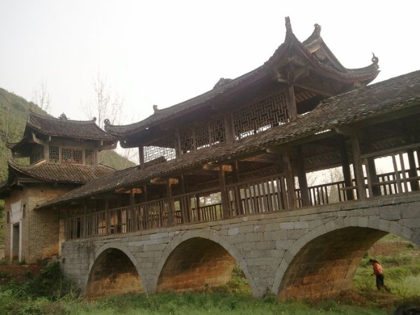 瑤族風(fēng)雨橋,又被稱之為“涼橋”或“風(fēng)水橋”。除木橋外,大多是在石拱橋上加蓋橋廊、橋亭和在橋頭的橋臺(tái)上建閣樓,穿斗式木構(gòu)架,二層檐或三層檐,有的四層檐,通高在9米~10米間。風(fēng)雨橋不僅是路人避雨之處,也是瑤族男女青年談情說愛的約會(huì)場(chǎng)所。廣西瑤族風(fēng)雨橋主要集中在富川瑤族自治縣和恭城瑤族自治縣。富川縣保存至今的古代瑤族風(fēng)雨橋有18座,其中著名的有迥瀾橋(建于明萬歷年間),青龍橋(與前者同時(shí)期修建),以及福壽橋、高橋、鳳溪新橋、皇侯泉橋、東轅橋、鸕鶿塘瀾通橋、龍歸橋、興隆橋等。