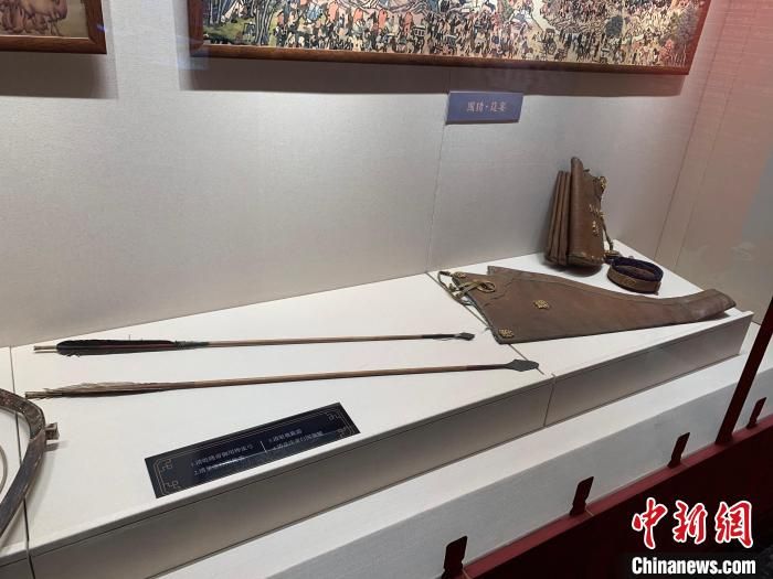 本次展覽將皇帝東巡期間所做的四項主要活動內(nèi)容向觀眾做以介紹,它們是“習(xí)武展雄風(fēng)”“暢飲一家親”“祭陵敬先祖”“百禮在皇宮”。其中,“習(xí)武展雄風(fēng)”這部分展出了“清皇帝行圍鈚箭”“清嘉慶帝行圍櫜鞬”“清弘歷御用樺皮弓”“清射鹿鈚箭”等文物。據(jù)介紹,清帝東巡出山海關(guān)到東北地區(qū),所經(jīng)路途山林茂密,大型猛獸居多,正是實地演練的最佳時機。