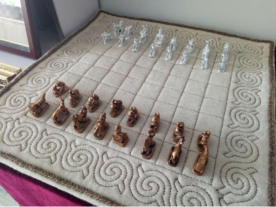 蒙古象棋,蒙語稱為“沙塔拉”,蒙古象棋傳統(tǒng)雕刻技藝在蒙古民族文化寶庫中占有重要地位,沿用手工雕刻方式,工藝精湛,已被入選為國家級(jí)非物質(zhì)文化遺產(chǎn)保護(hù)名錄。阿巴嘎旗民間藝人阿敖日布創(chuàng)作出的“蒙古象棋”被編入了《北京國際藝術(shù)精品博覽》一書、“漢馬刮板”獲得國家外觀設(shè)計(jì)專利。2005年,阿敖日布被內(nèi)蒙古自治區(qū)級(jí)“民間工藝美術(shù)大師”稱號(hào)。在2008年北京“中國故事”文化展示活動(dòng)中,他首次代表內(nèi)蒙古向世人展示了自己的蒙古象棋雕刻藝術(shù)。