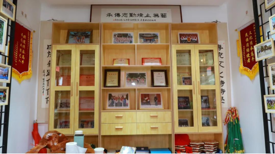 幾乎每一天,村民們都會(huì)來在傳習(xí)所打霸王鞭,這似乎成了生活中一件自然而然的事情。由于場地受限,往年當(dāng)訪客較多時(shí),何松康還會(huì)借助村委會(huì)的院子來開展傳承傳習(xí)活動(dòng)。
