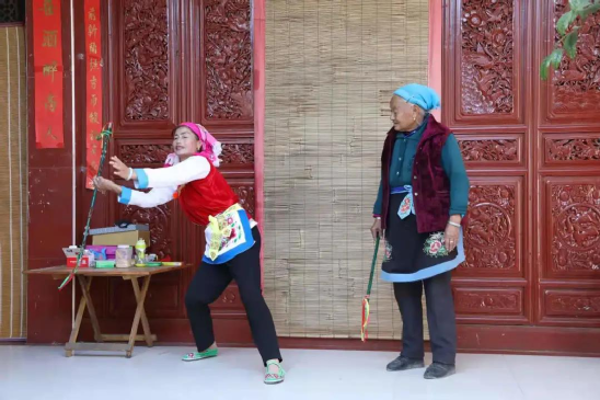 何松康,白族霸王鞭州級代表性傳承人,也是白族霸王鞭傳習(xí)所的負(fù)責(zé)人,傳習(xí)所就建在她們家一樓的堂屋里。