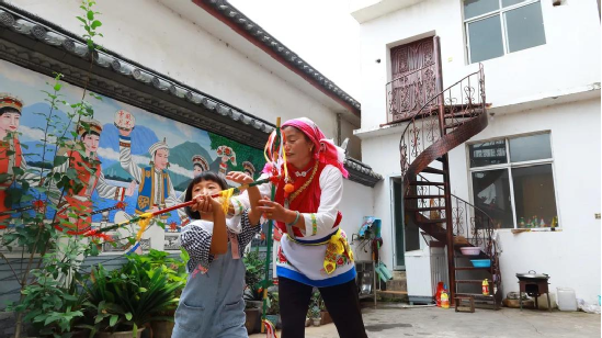 傳統(tǒng)文化時(shí)時(shí)學(xué),白族舞蹈代代傳。小小的霸王鞭看似簡單,里面卻包含了白族人民田間勞作的智慧。用自己的努力,言傳身教地教授霸王鞭,這愚公移山般的精神也是傳承人的智慧?!敖裉煜挛?點(diǎn),我還要去江尾一趟,教他們的繞三靈團(tuán)隊(duì)跳霸王鞭”,何松康說。