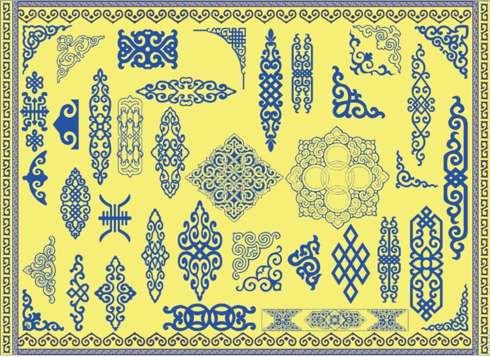 傳統(tǒng)的氈繡工藝品包括吉祥圖案、花紋圖案、五畜圖案、鮮花飛鳥、蒙古包門、氈包帡幪、馬鞍屜、氈靴(氈襪)、坐墊、各種繡花氈囊、拾羔袋、駝鞍等。