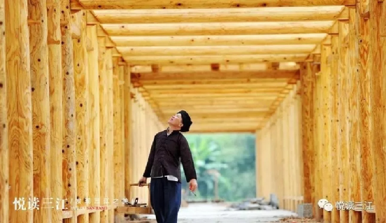 2003年,楊家第四代木構(gòu)傳承人楊求詩(shī),成功出師。由于深得祖?zhèn)骷妓嚕又趭^好學(xué)、悟性高,楊求詩(shī)很快成為當(dāng)?shù)赜忻哪窘硯煾怠钋笤?shī)建造的木建筑有鼓樓、風(fēng)雨橋、吊腳樓、戲臺(tái)、寨門、涼亭等,不僅繼承“干欄”式建筑的優(yōu)良特點(diǎn),而且內(nèi)設(shè)吊腳,使建筑更加美觀,創(chuàng)立了別具一格的木建筑工藝體系。最近幾年,他陸續(xù)承接了一些外地的莊園、度假村、風(fēng)雨橋、長(zhǎng)廊、寨門等項(xiàng)目,但更多的還是修建本地鼓樓,三江的平懂、皇朝、獨(dú)峒的鼓樓均出自他的雙手。