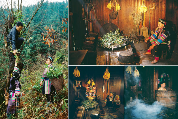 各地藥浴習俗不同,或每日洗浴,或擇吉日洗浴。由每戶最年長的男性上山采來追風藤、半邊楓、九龍盤、血藤等中草藥,洗凈,捆成把或切碎放入大鐵鍋中用水煮沸,待煮出藥汁后,撈去藥渣,把煮好的藥水放入專門藥浴的大桶——“龐桶”中。浴者赤身入桶,在保持適宜溫度(一般為38度左右)的藥液中浸泡20-30分鐘。鍋中有煮好的備用藥水,可保證每位藥浴者浴時的溫度相同。在藥浴中,通過浸泡,讓藥汁慢慢地滲入人體的毛細血管、遍及全身,達到以浴治病的目的?,幾逵盟幩瓷?,不分男女老幼,全家皆洗,一家人輪流洗,水臟了就換,冷了再加熱?,幾鍖鹘y(tǒng)禮儀規(guī)范滲透到藥浴治療當中,規(guī)矩是:先客后主,先小后大,先老后少,先男后女。