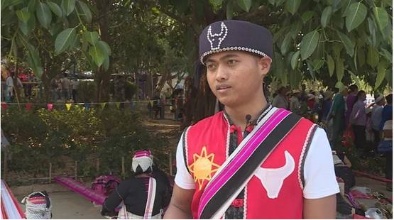 翁嘎科魏明介紹:“佤族男服飾以黑或者與紅、黑白、黑紅為搭配,女服飾裙子是純手工藝以黑白、黑紅為主基調(diào), 頭飾是用銀白色的頭飾進(jìn)行裝飾,裹著一層類似于項(xiàng)鏈一樣的飾品,最原始的頭飾還是用黑布裹起來(lái)的,演變到現(xiàn)在的話還需要做一些裝飾?!?/p>