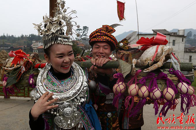 苗族姑娘韋夢(mèng)迪說(shuō):“現(xiàn)在人們生活水平提高了,活動(dòng)的內(nèi)容也越來(lái)越豐富?;顒?dòng)現(xiàn)場(chǎng)的姑娘若對(duì)小伙子有好感,跟過(guò)去情況也不一樣了,只要人好就行?!绷侄创迮嗫仆屠先撕喂疰灿幸粯拥母惺埽骸坝浀靡郧靶〉臅r(shí)候‘打同年’就是吹蘆笙、跳踩堂舞、對(duì)歌,現(xiàn)在‘打同年’活動(dòng)越來(lái)越豐富,還增加了籃球賽、拔河比賽、聯(lián)歡晚會(huì)等很多節(jié)目?!泵磕旰倩丶叶家獏⒓印按蛲辍钡膹V西大學(xué)學(xué)生潘金鑫來(lái)自融水縣懷寶鎮(zhèn),他說(shuō):“通過(guò)開(kāi)展吹蘆笙、踩堂舞、文藝表演等傳統(tǒng)文化活動(dòng),加深了大苗山黨群干群之間、村寨各族同胞之間的情誼,增進(jìn)了民族團(tuán)結(jié)。我自己也特別能感覺(jué)到家鄉(xiāng)的發(fā)展變化,這讓我很自豪?!?/p>