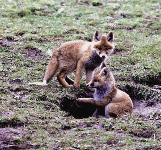 藍天白云,微風輕漾;草地碧綠,鳥語花香。大自然的美景圖正在小赤狐的家園四周徐徐展開。在膽大的小赤狐的叫喚聲里,躲在洞內的另外兩只小赤狐也壯著膽子探出頭來。不一會兒,它們習慣了周圍的環(huán)境,三只小赤狐在離洞口5米遠的范圍內嬉戲玩耍著。它們時而跳躍,時而奔跑,展現(xiàn)出本能的捕獵動作。稍大一點的小赤狐騎在小一點赤狐的背上嬉戲玩耍,小赤狐也不示弱,奮力反擊,猶如兒童打鬧,其樂無窮。那烏黑溜圓的眼睛彎了又彎,毛茸茸的尾巴高高地翹起,身體嬌小,惹人喜愛,讓人看了會產(chǎn)生想上去抱一抱、摸一摸小赤狐身軀的念頭。