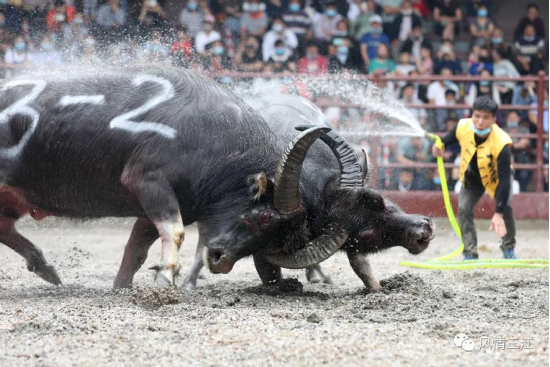 ·2020年5月1日,廣西三江侗族自治縣在縣城侗鄉(xiāng)鳥巢舉行中國侗族“月也”牛王節(jié)活動,以祈福游行、牛王爭霸賽等形式盡展侗鄉(xiāng)風情,14頭牛王輪番登場激戰(zhàn),讓觀眾大呼過癮。今年五一,三江在精心豐富文化旅游業(yè)態(tài)的同時,全力加強客流管控,嚴防人員聚集,有序引導游客間隔入園、錯鋒旅游,力促疫情防控和文旅復蘇“兩不誤”,助力侗鄉(xiāng)文化旅游“回暖升溫”。
