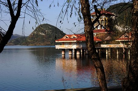 百花湖在朱昌鎮(zhèn)旁,湖中有100多個(gè)小島,以湖汊多、島嶼多見勝,遠(yuǎn)眺之下,很有幾分江南水鄉(xiāng)的韻味。游覽百花湖的最佳時(shí)間是春天,那時(shí)百花湖上就會(huì)百花盛開,姹紫嫣紅,百花湖也是因此而得名的。景區(qū)以湖光山色和巖溶地貌的自然景觀為主體,兼具秀、幽、奇、巧的特色。