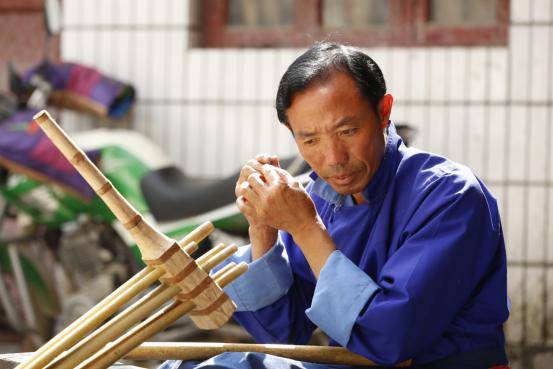 最難的是敲打簧片、割簧片、校單音、校和音這四個程序,最細致,最需要掌握的就是割簧片。把竹管的聲音和簧片的聲音全部調(diào)成一致,然后還要校正聲音。把單音校好以后還有雙管的,如果不把聲音校準,雙管就會和不起來,吹起來也不好聽,就不能用。