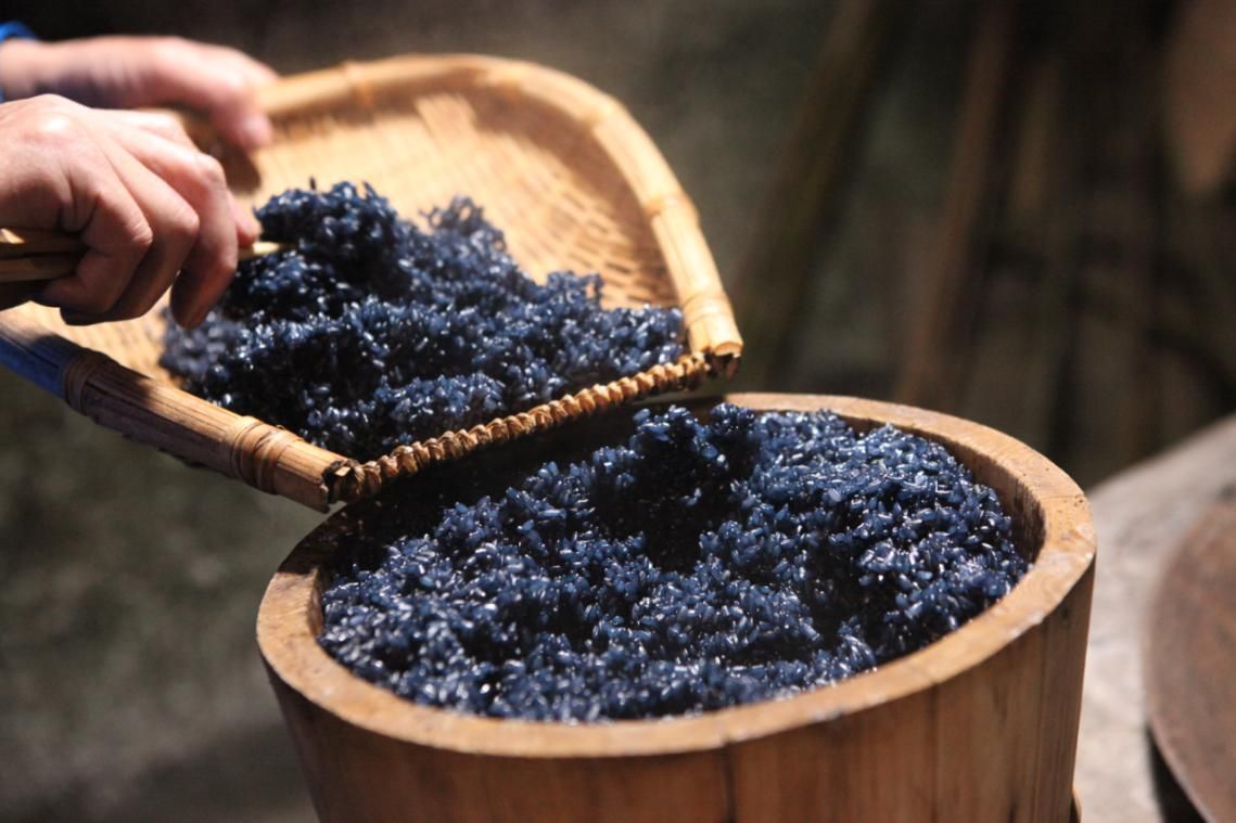 烏米飯制作技藝是石頭寨苗族同胞用天然植物烏飯葉和糯米制作而成的一種苗家特色傳統(tǒng)飲食。因其色澤純黑,故稱(chēng)之為烏米飯。